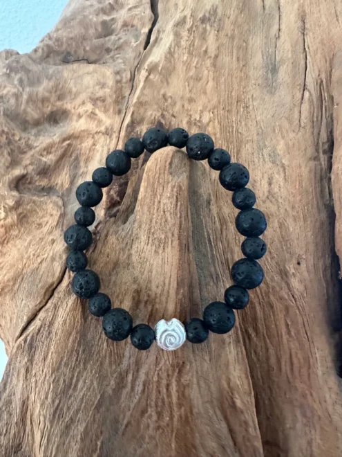 Edles Armband aus 6 und 8 mm LAVA Perlen mit silberner oder goldener Schnecke.
