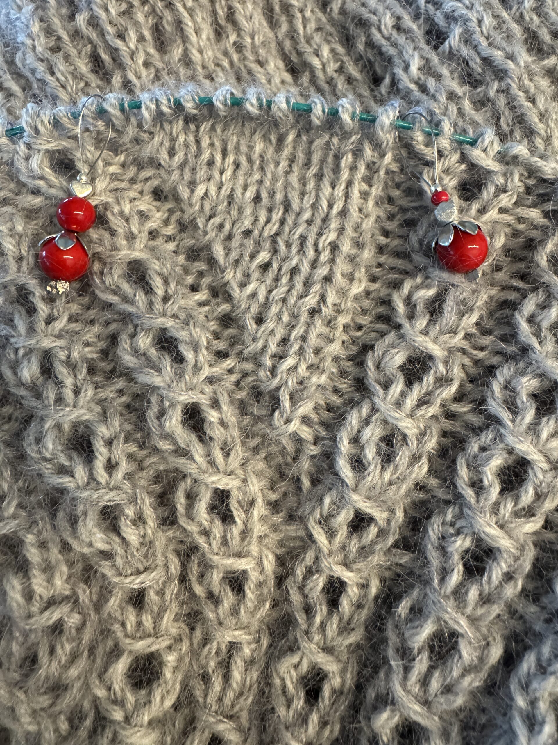 Nach einer gewissen Höhe wird ein „V“ in glatt rechts eingestrickt – du kannst es so wie im Original einbauen oder individuell selbst entscheiden, ob du diesen Teil des Tuches größer (breiter) haben möchtest.